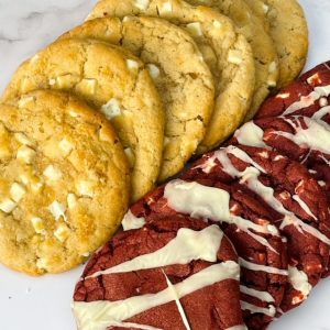 Choose from ONE type of chocolate chip and ONE cookie flavour, add these to the COMMENTS field (which sponge with which buttercream)