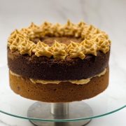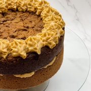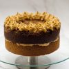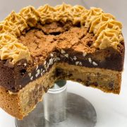 Looking for something different to an ordinary sponge cake, look no further! One giant chocolate, Biscoff and white chocolate chip cookie layer twinned with a milk chocolate and peanut giant, finished with covered in peanut and Biscoff buttercream and finished with more chocolate chunks.