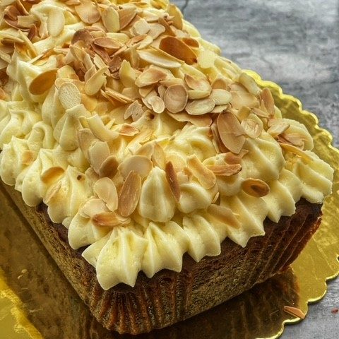 This is a very simple loaf cake, it’s delicious and quick and easy to make. A cherry and white chocolate chip loaf with white chocolate buttercream and mascarpone icing, topped with toasted almonds.