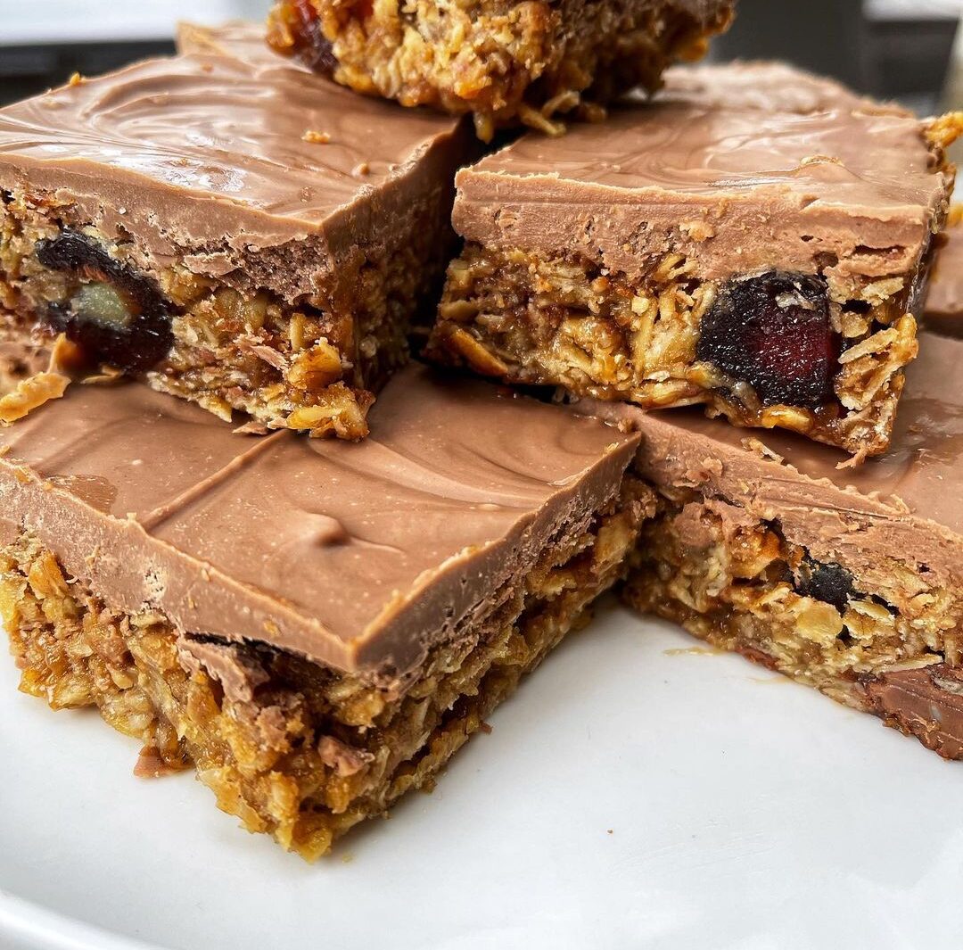 - Once cooled pour over the melted chocolate and set in the fridge. Once hard it’s ready to slice up and serve!