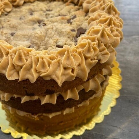 PEANUT BUTTER & MILK CHOCOLATE CHIP COOKIE CAKE