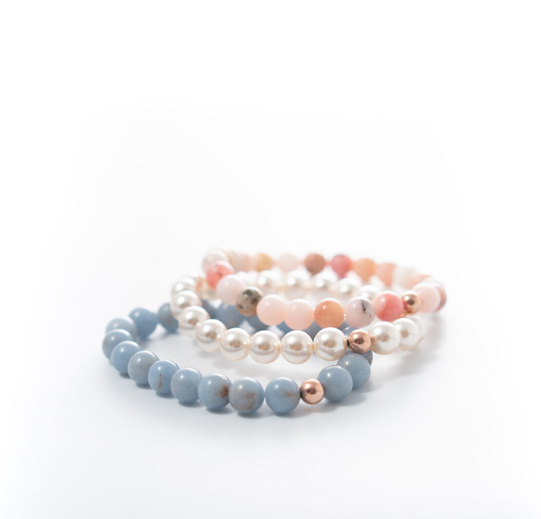For me they have almost become a comfort blanket as well as a fashion accessory, yes they are beautiful, the stones each carefully chosen, but not just on their appearance. Each has its own property, the Blue Angelite is a powerful stone that was discovered in Peru in the 1980s. Associated with the wind, it has a beautiful milky blue appearance that is believed to have a calming effect on your mind and the Peruvian Pink Opal is still worshipped today as a healing and protective stone. It is considered one of the most important healing stones that can have a profound effect on a person’s mood. It’s often referred to as the “stone of spiritual awakening” due to the powerful vibrations that it holds. I really feel that when I wear them.